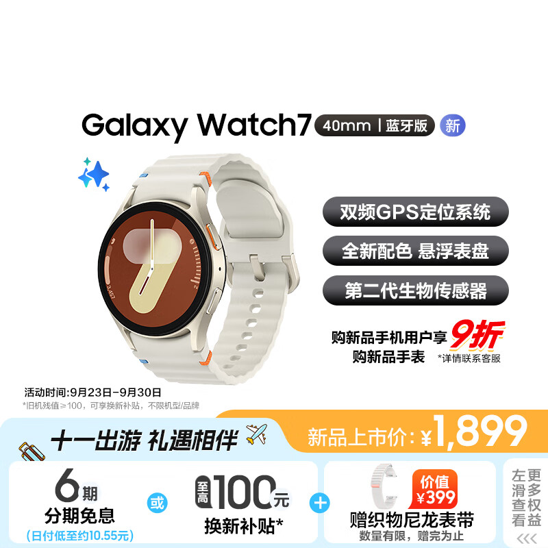 三星 Samsung Watch7 智能手表/蓝牙通话/运动电话手表/悬浮表盘/双频GPS定位 40mm 云际白 男女表价格:1899.00元!