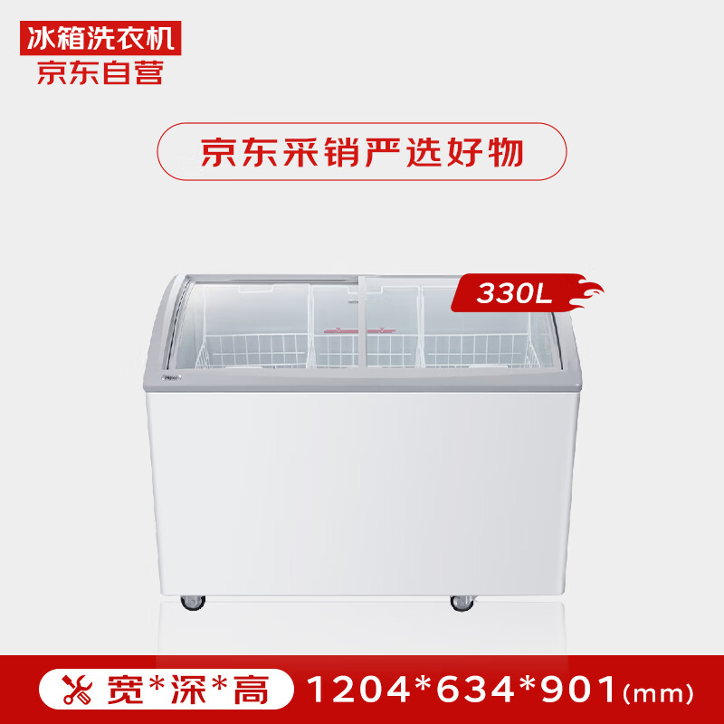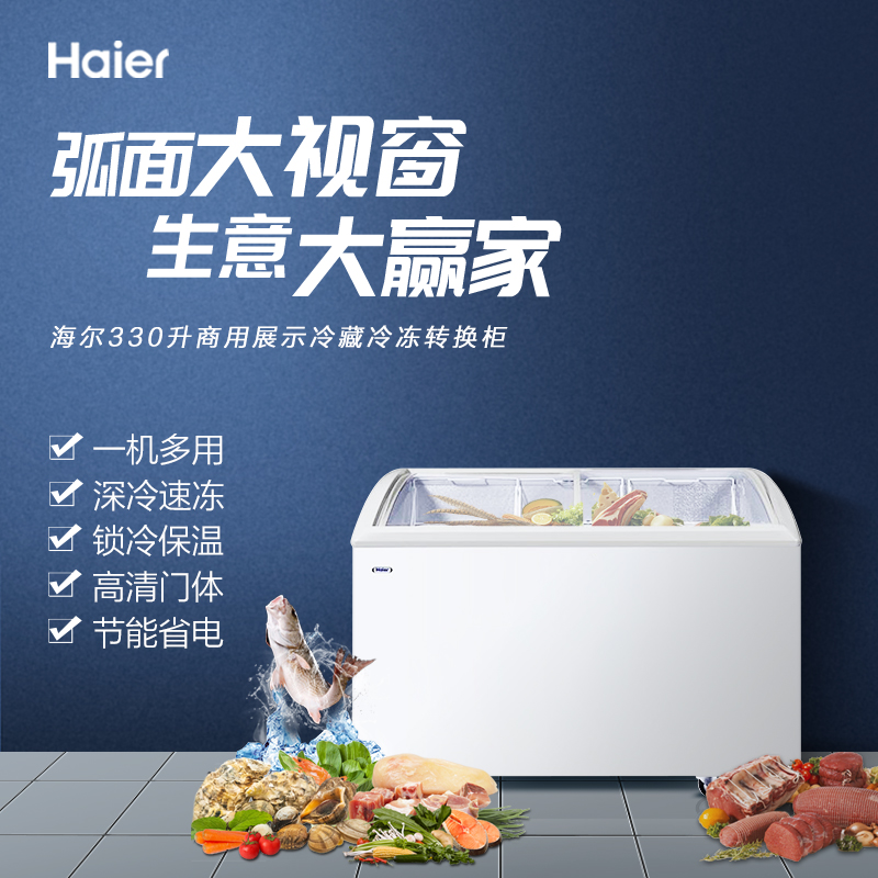 海尔(Haier)260升卧式展示柜冷藏柜 圆弧玻璃门冷藏冷冻商用保鲜柜冰柜SC/SD-330HDS 以旧换新价格:2299.00元!