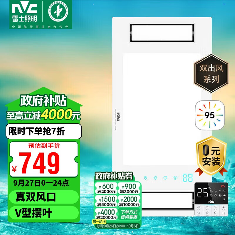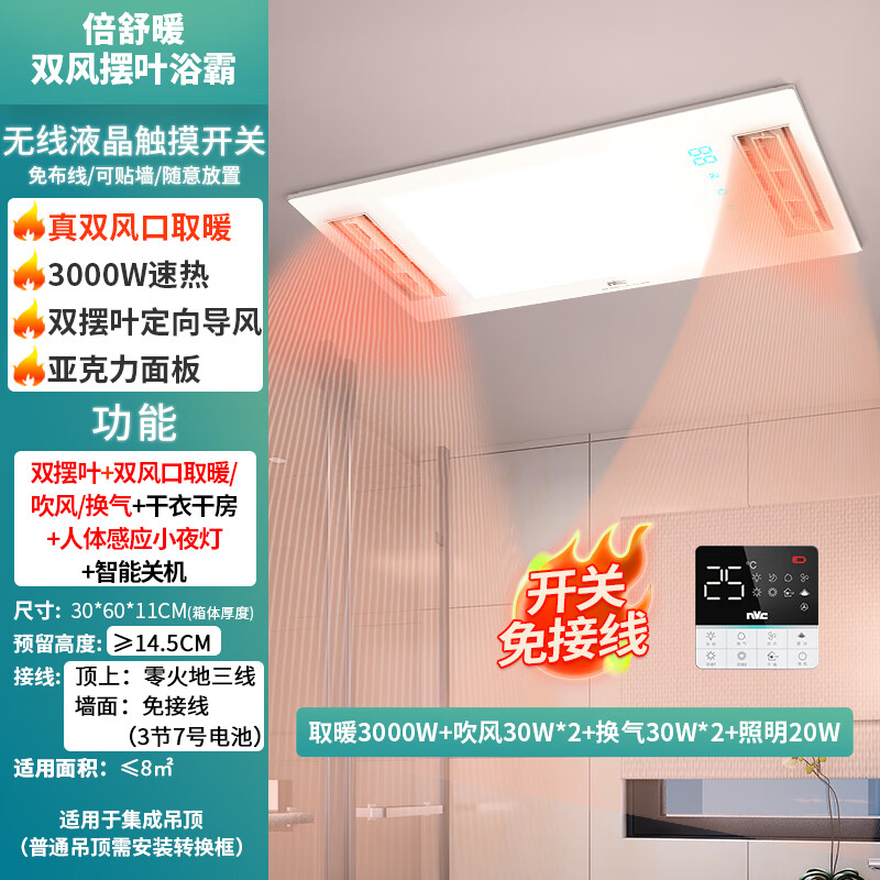 雷士(NVC)真双风口取暖换气摆风浴霸暖风照明排气一体机卫生间集成吊顶Y314价格:1059.00元!