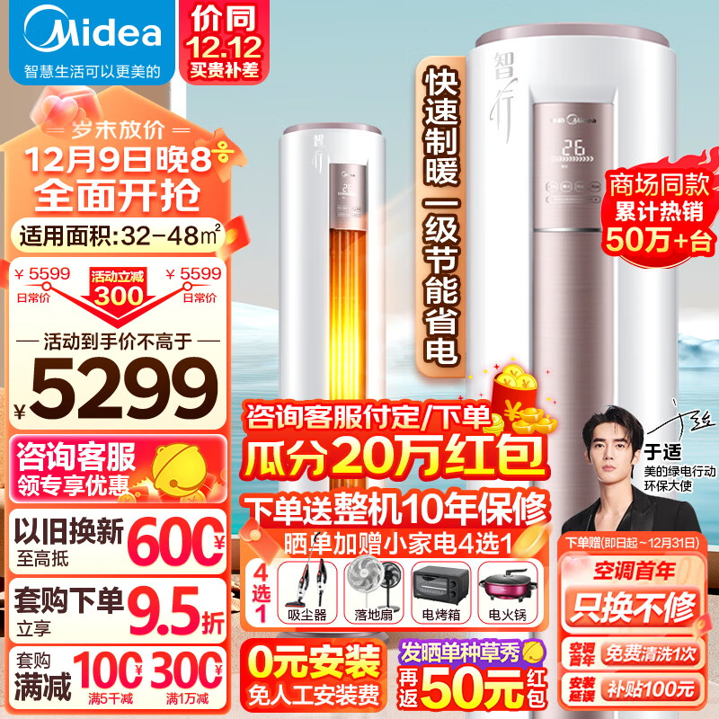 美的(Midea)智行 3匹 新能效变频冷暖 一键智控温 智能家电 客厅立式空调柜机 KFR-72LW/BDN8Y-YA400(3)A价格:5299.00元!
