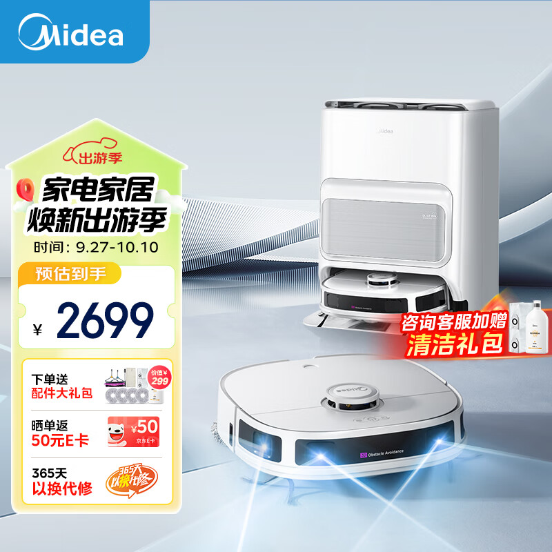 美的(Midea)扫地机器人扫拖一体 灵眸V12极地白 自动集尘扫拖洗烘一体机自动清洗拖布 猫狗宠物毛发克星洗地机价格:2659.00元!