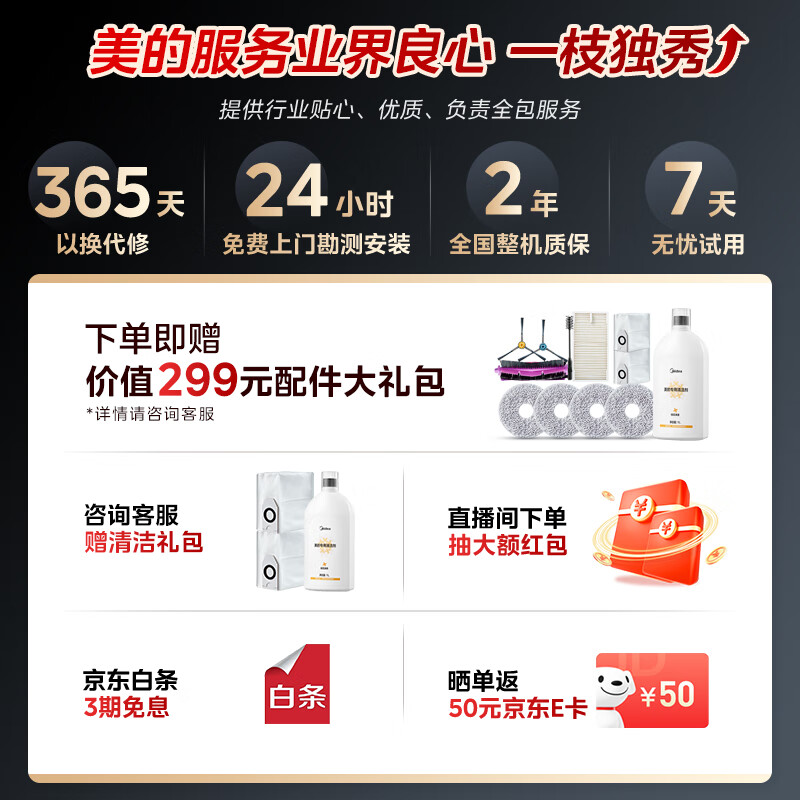5、家里买点的电器都是美的的,物美价廉质量好,机子的清扫效果非常好,选对了,还能自动集尘,送了两套配件,能用很久,很不错