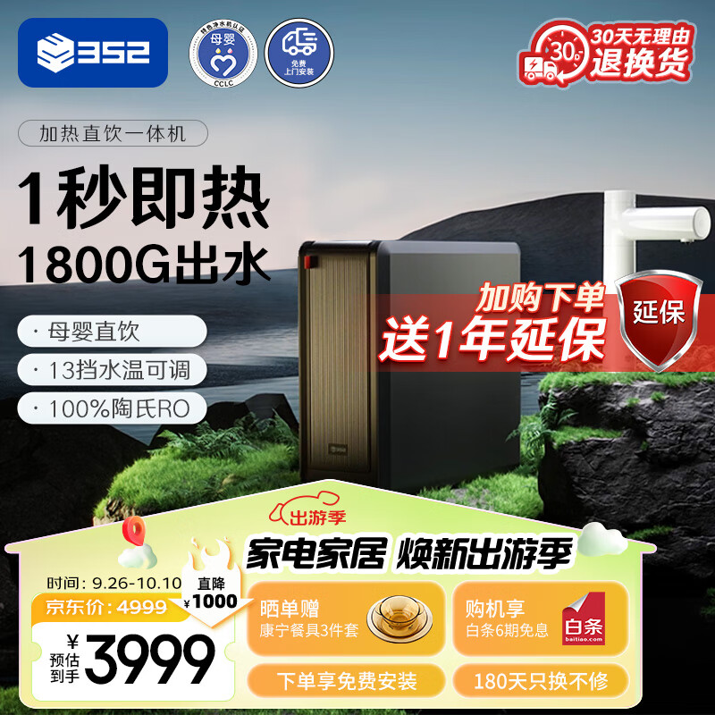 352净水器加热直饮一体机 ro反渗透家用 1800G常温出水4.6L/min 1秒即热400G通量 A418H白色水龙头价格:4199.00元!