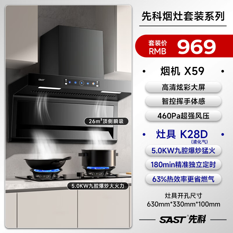 先科(SAST)油烟机顶侧双吸抽油烟机烟灶套装家用吸油烟机厨房大吸力油烟机燃气灶抽烟机灶具套装 液化气【900宽】26爆吸+5.0猛火价格:1499.00元!