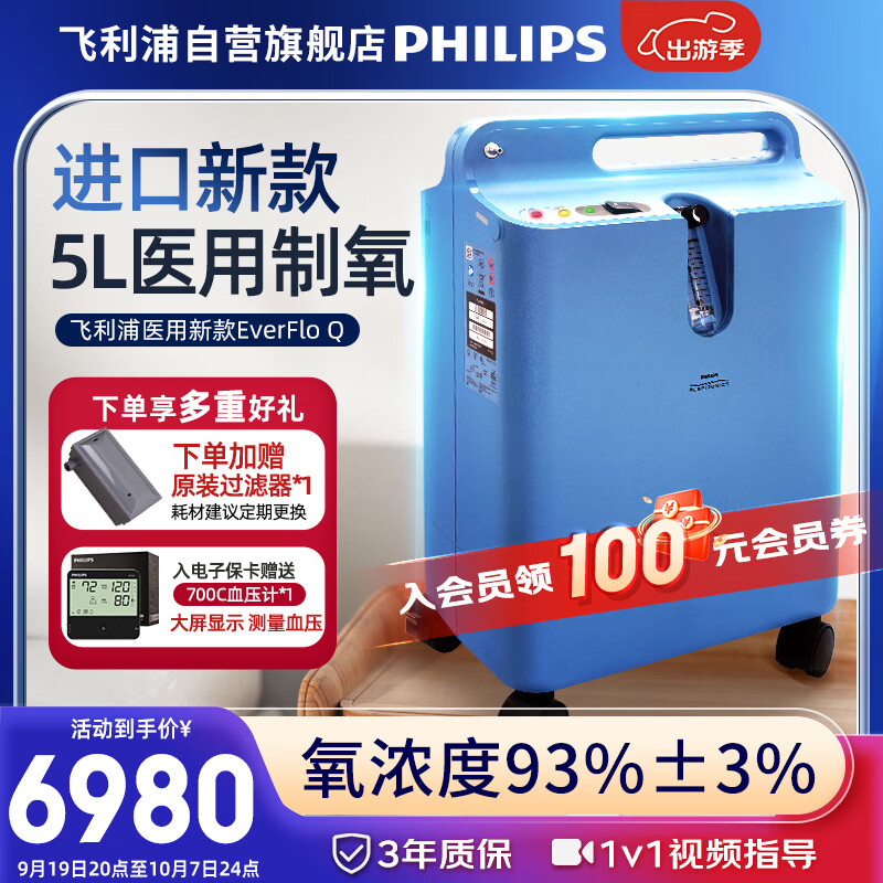 飞利浦(PHILIPS)5L升医用制氧机进口吸氧机家用老人孕妇氧气机EverFlo Q价格:7380.00元!