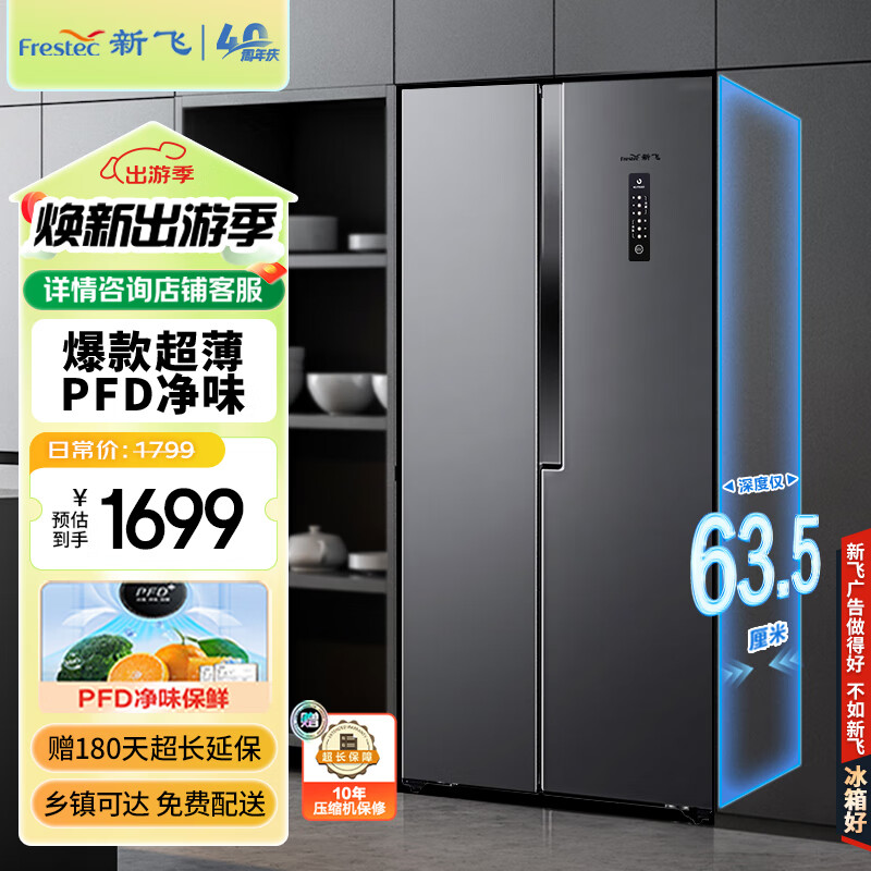 新飞(Frestec)450升超薄双变频一级对开门双开门冰箱超大容量多维风冷无霜电脑控温冰箱BCD-450WK9ET价格:1799.00元!