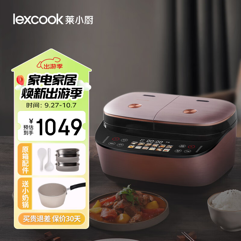 莱小厨(Lexcook)莱克微压双胆电饭煲3L电饭锅智能预约蒸煮煲汤一体多功能电饭煲2-4人 淡绯紫(6系Pro)TC602价格:1099.00元!