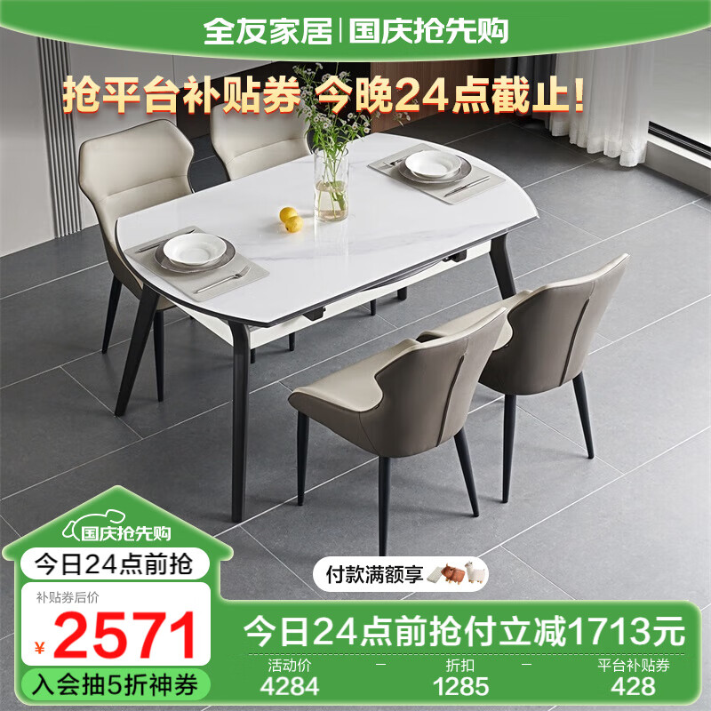 全友家居 简约钢化玻璃折叠餐桌椅组合可伸缩家用桌子一桌四椅DW1059价格:4284.29元!