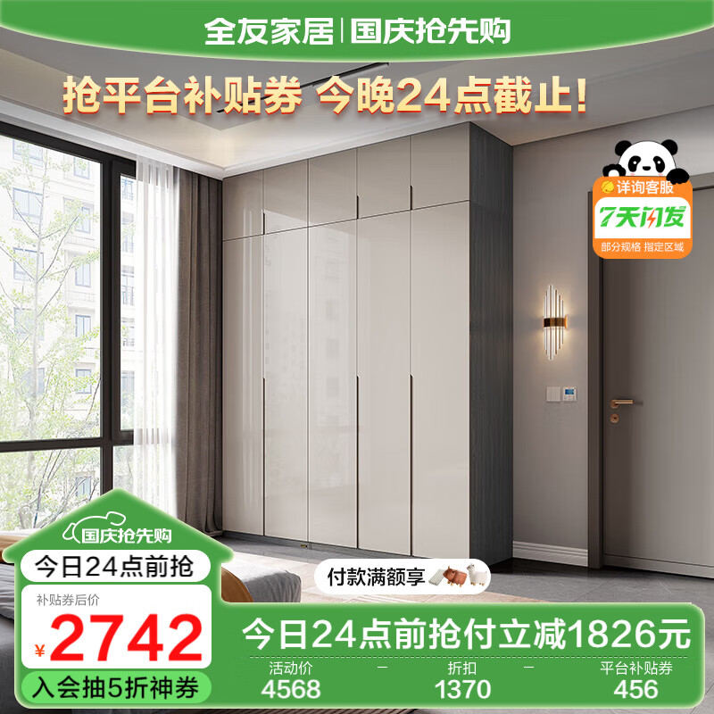 全友家居 极简风模块化收纳智能感应灯平开门储物柜子衣柜卧室DG10010价格:4568.57元!