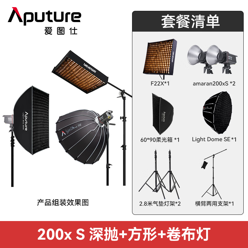 爱图仕(Aputure)200x S 补光灯200W影棚直播间视频录像可变色温绿幕背景LED影视灯 F22X卷布灯通用直播间三灯套装价格:9655.00元!