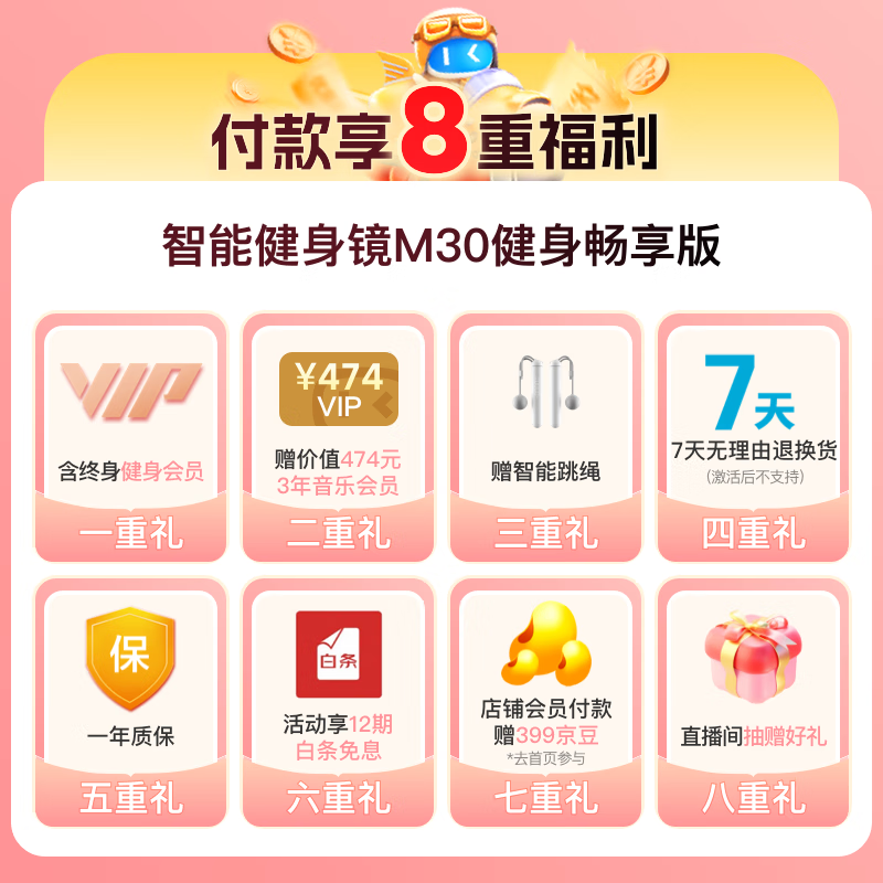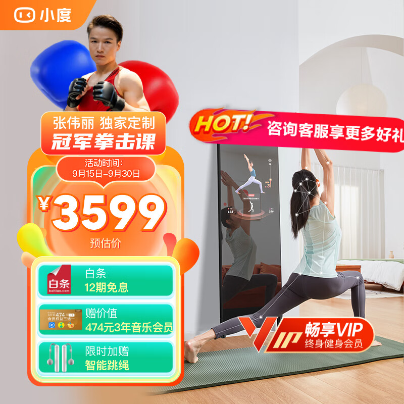 小度添添智能健身镜 M30健身畅享版 魔镜AI运动镜 终身会员 礼物送礼价格:3599.00元!