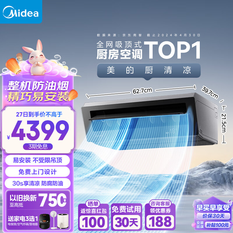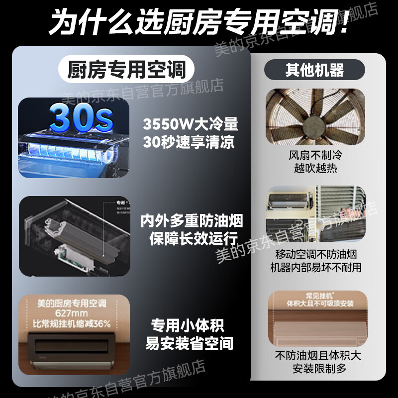 美的(Midea)厨清凉 厨房空调 专用吸顶式 1.5匹变频 防油烟 大冷量 易安装CKF-35XW/BN8Y-XD200【包安装】价格:4599.00元!