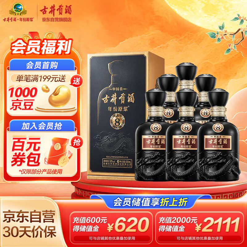 古井贡酒 年份原浆古8 浓香型白酒 50度500ml*6瓶 整箱装(含礼袋)价格:1900.00元!