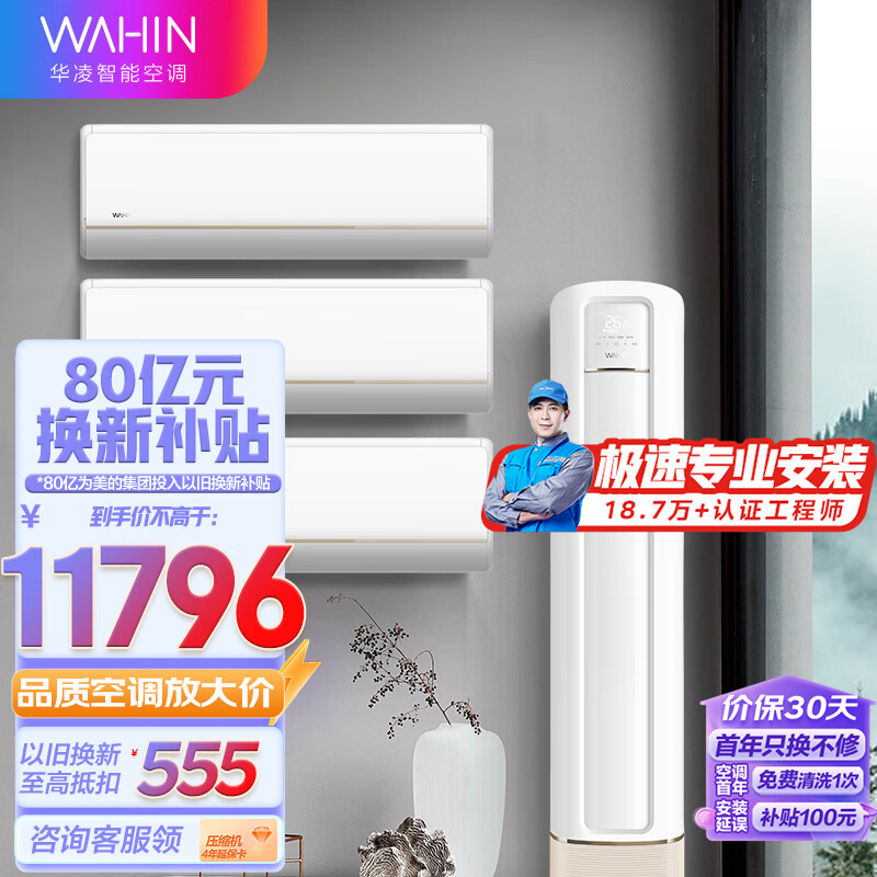 华凌空调新一级 3匹大出风口变频柜机 KFR-72LW/N8HB1A +新一级1.5匹变频挂机KFR-35GW/N8HE1Pro*3价格:11496.00元!