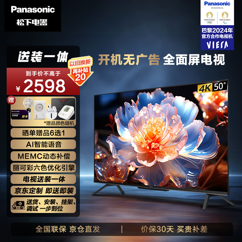 松下(Panasonic)电视50英寸 LX580【送装一体】即送即装 屏MEMC 开机无广告智能电视机 TH-50LX580C价格:2598.00元!