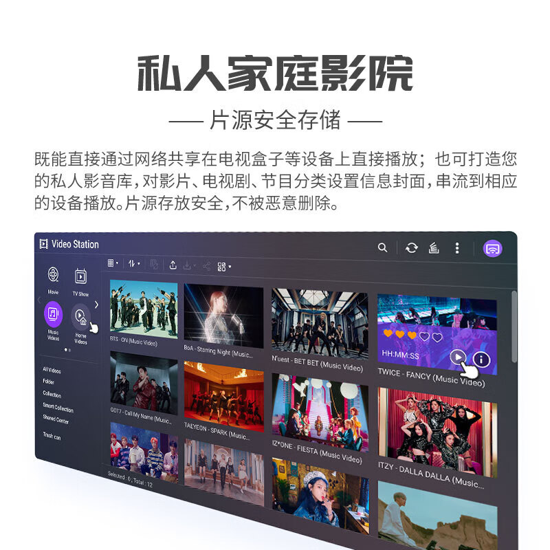 5、黑群转白威,配置比对面高出太多了,四盘位+2nvme绰绰有余,买回来升级了内存,其实8g内存也完全够用了,加强散热加了利明nvme的散热条,系统运行飞快,装上一堆应用,jellyfin硬解,hdmi口连上电视影音决决子!威联通这次给力了!起码比某晖有诚意