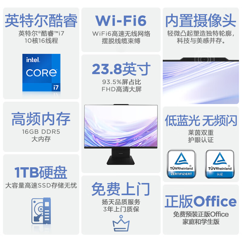 5、用了几天电脑挺顺畅,对眼睛也不刺激,看久了也不累,一体机占用空间少很不错。这个尺寸办公够用。挺好。