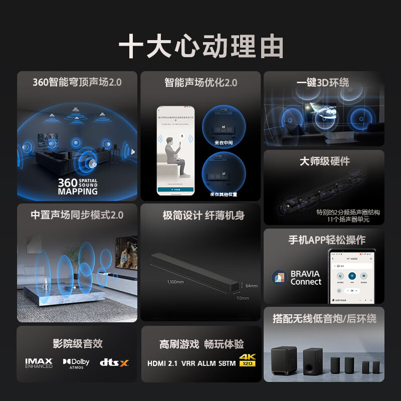 索尼(SONY)HT-A8000+SW3+RS3S 环绕套装 全景声 360智能穹顶 4K/120Hz 回音壁 家庭影院 电视音响价格:10490.00元!