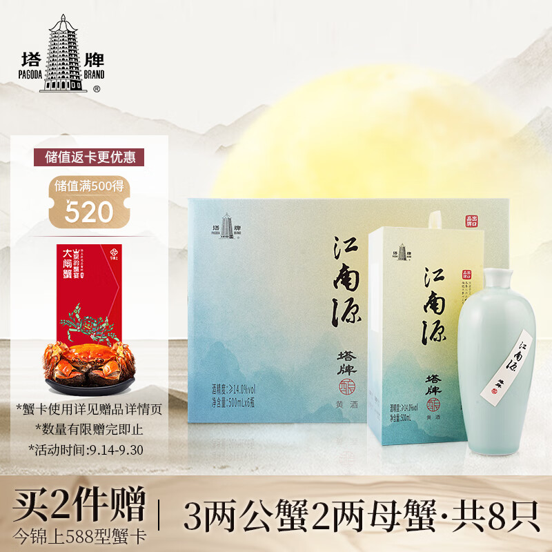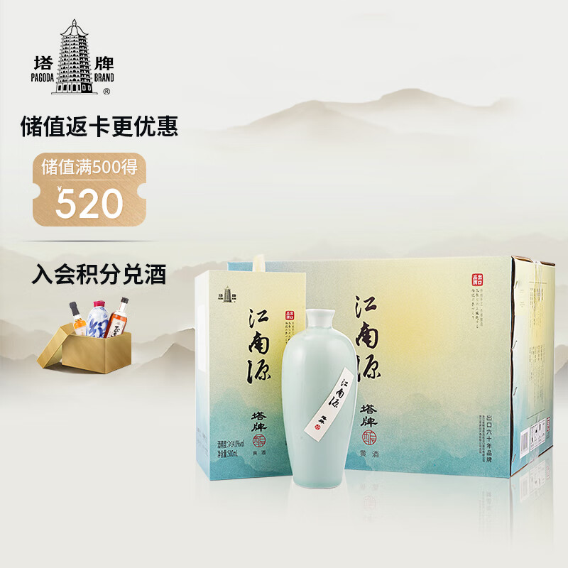 塔牌 江南源 半干型 绍兴黄酒 500ml*6瓶 整箱装 无焦糖色价格:828.00元!