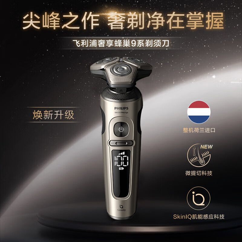 飞利浦(PHILIPS)电动剃须刀SkinIQ肌能感应刮胡刀奢享高端蜂巢9系整机荷兰进口胡须刀 男士生日礼物送男友送老公 高端奢享9系|SP9873【敏感肌适用】价格:3799.00元!