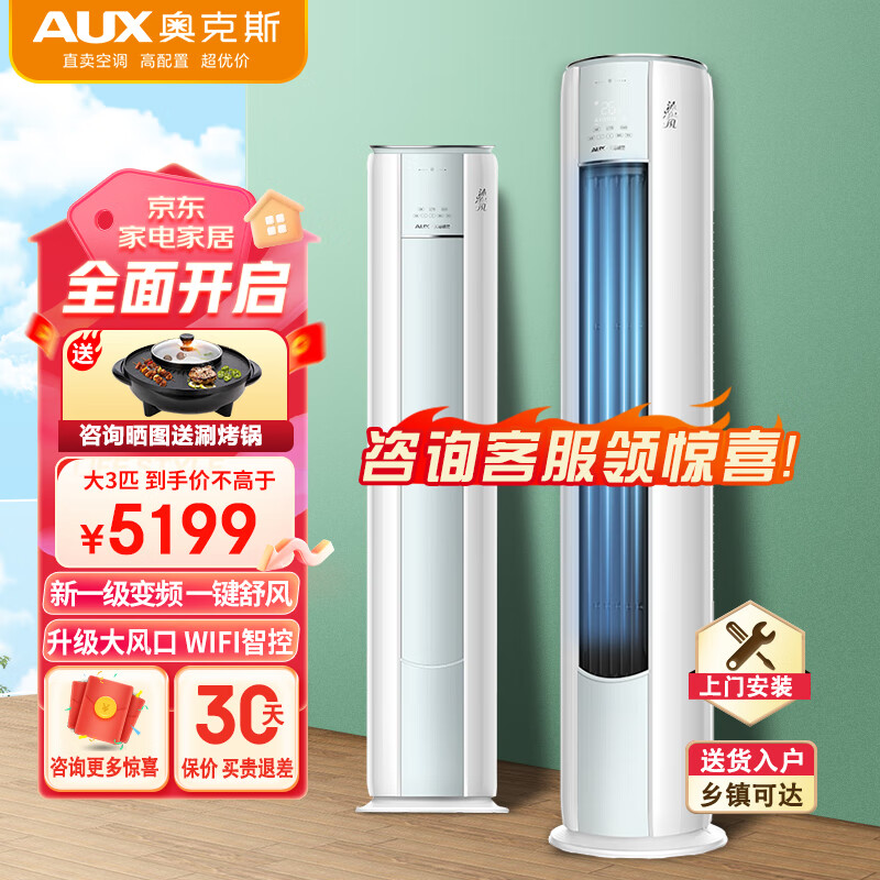 奥克斯(AUX)3匹新一级立式空调冷暖两用柜式UVC深度除菌柜机沐净风KFR-72LW/BpR3AQF19(B1)[家电]价格:5199.00元!