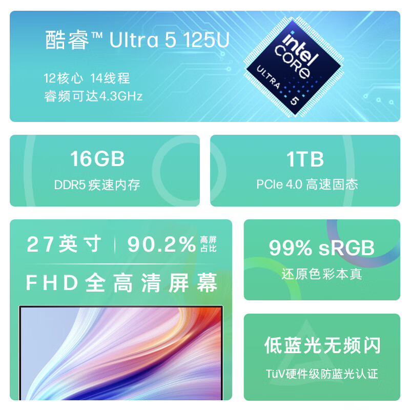 惠普HP 星One系列高清一体机电脑27英寸(U5-125U 16G DDR5 1TBSSD 无线Wifi6蓝牙 三年上门)FHD高色域价格:4999.00元!