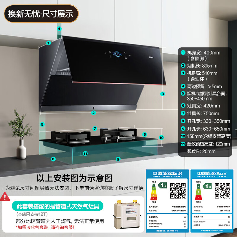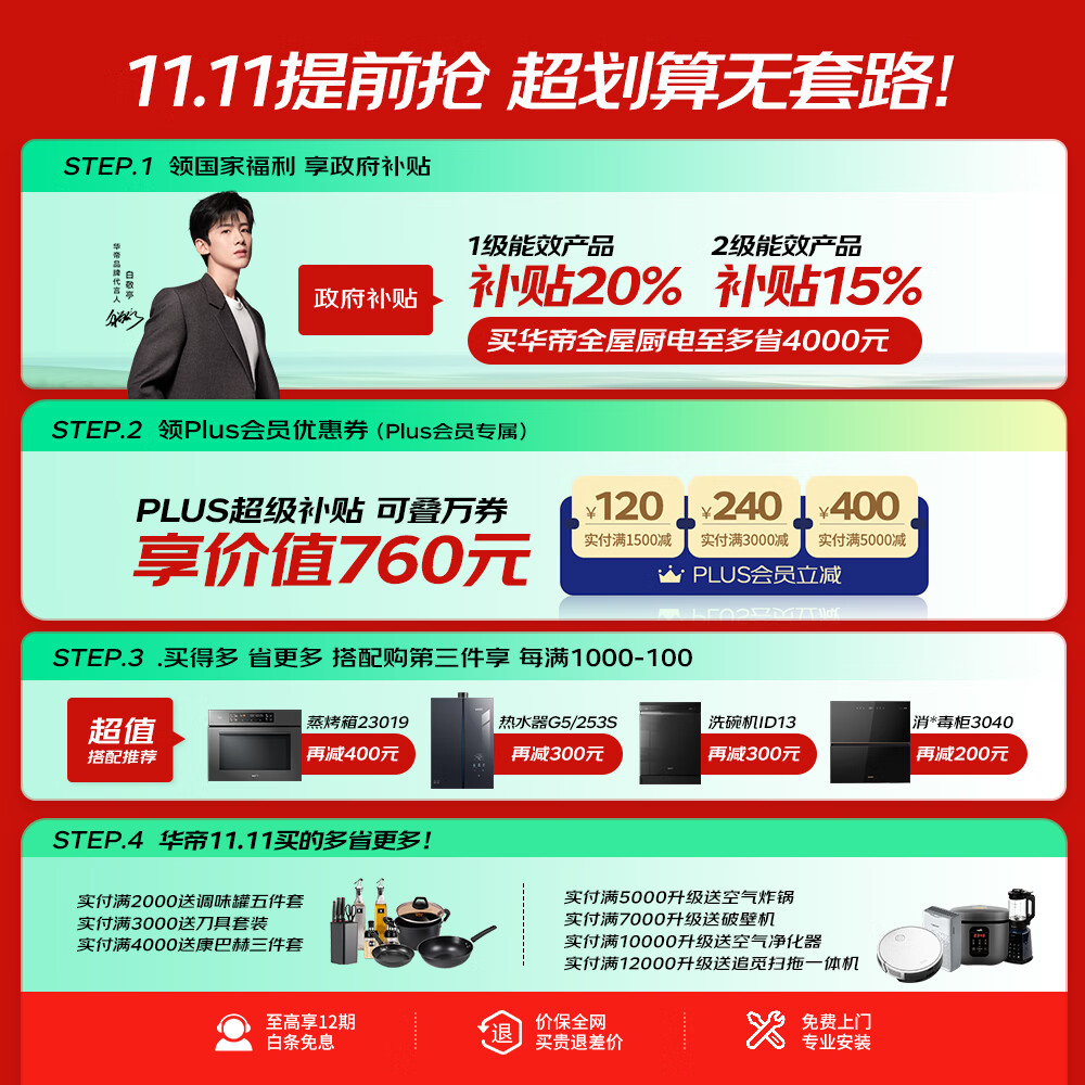 华帝(VATTI)抽油烟机家用顶侧双吸变频大吸力烟机燃气灶烟灶套装24风量自动洗侧吸灶具套装i11193天然气价格:3299.00元!
