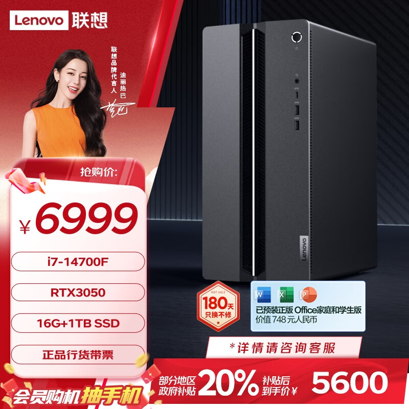 联想(Lenovo)GeekPro设计师游戏台式电脑主机(酷睿14代i7-14700F RTX3050 16G DDR5内存 1TB SSD )价格:6999.00元!