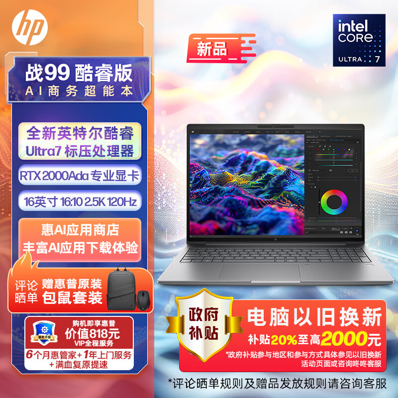 惠普(HP)战99 24款酷睿标压高性能笔记本AI电脑工作站 16英寸Ultra7 155H 32G 1TSSD RTX2000Ada 2.5K屏价格:13999.00元!