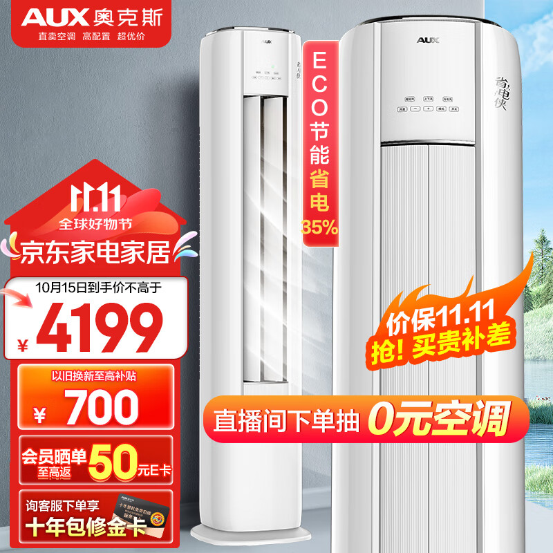 奥克斯(AUX)空调柜机3匹 新能效立式客厅 变频冷暖家用 ECO节能省电侠 KFR-72LW/BpR3GQS1(B3)大风量价格:4199.00元!