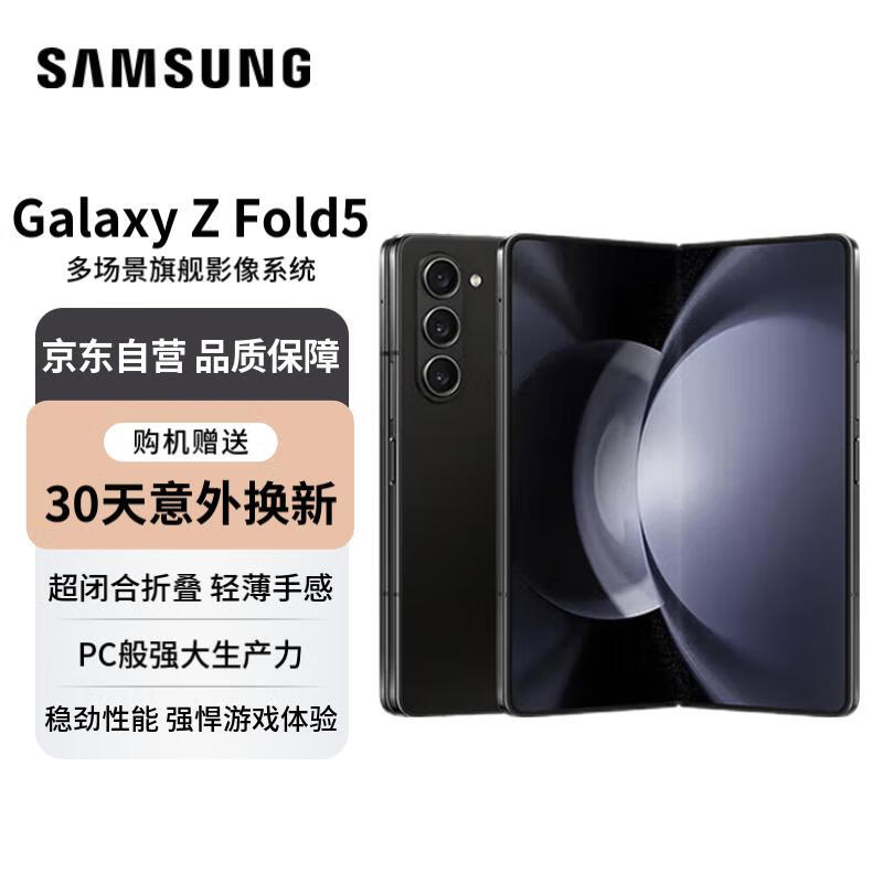 三星 SAMSUNG Galaxy Z Fold5 超闭合折叠 轻薄手感 12GB+512GB 5G手机 宇夜黑价格:12999.00元!