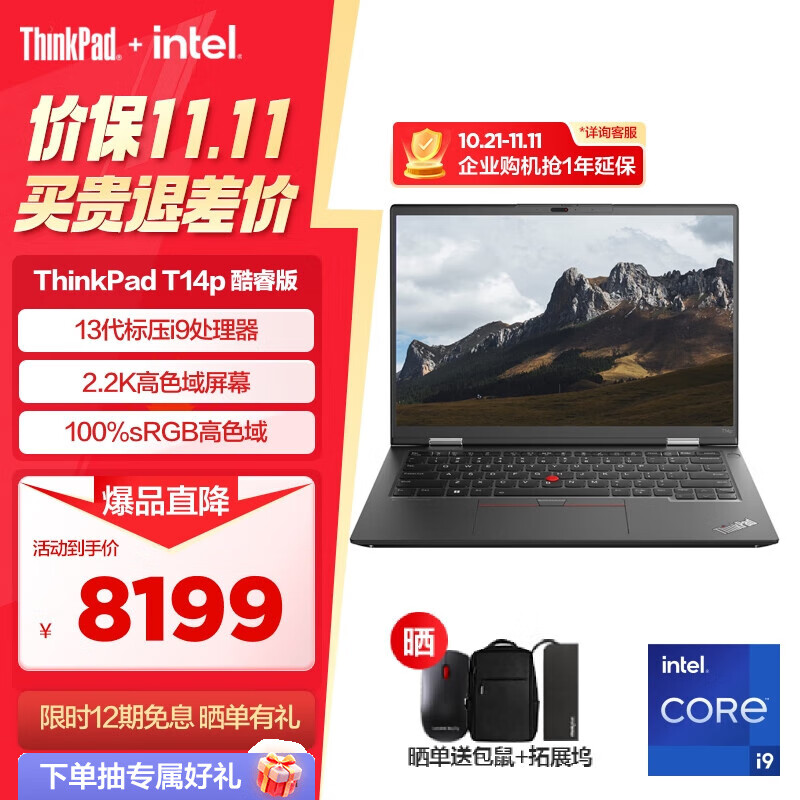 ThinkPad T14p 联想 13代英特尔酷睿标压 T系列工程师商务办公高性能笔记本电脑 14英寸轻薄本2.2K高色域屏 i9-13900H 16GB 512GB 05CD价格:8199.00元!