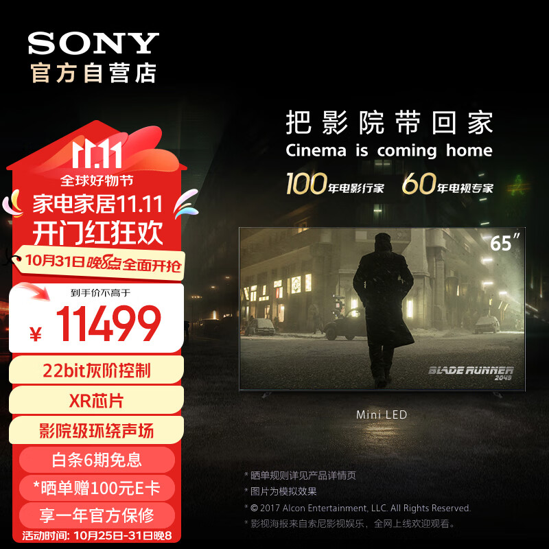 索尼(SONY)65英寸 索尼电视7系 MiniLED 电影感光影/原彩 22bit灰阶控制 XR芯片 65XR70价格:11499.00元!