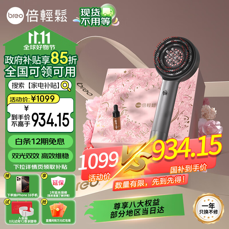 倍轻松Scalp3S头皮智能按摩梳鎏金礼盒 护发精油红光滋养护头皮头部按摩仪 送父母男女友生日节日礼物价格:1299.00元!
