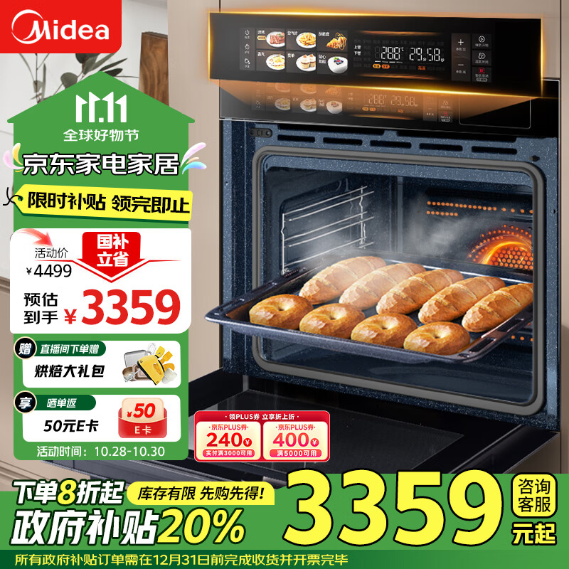 美的70L大容量嵌入式蒸烤箱一体机 航空涡轮热风 温湿双控 13.4英寸大彩屏 蒸烤炸炖4合1体SX7价格:4499.00元!