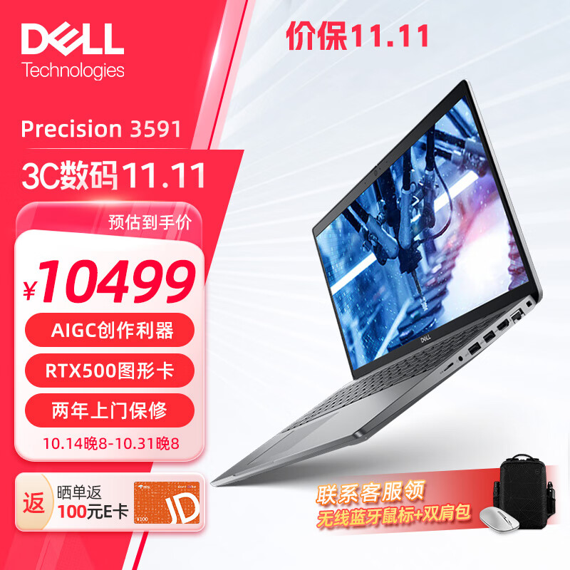 戴尔(DELL)【Precision 3591】 15.6英寸图形【移动工作站】Ultra 7-155H/32G/1T/RTX500 Ada价格:10999.00元!