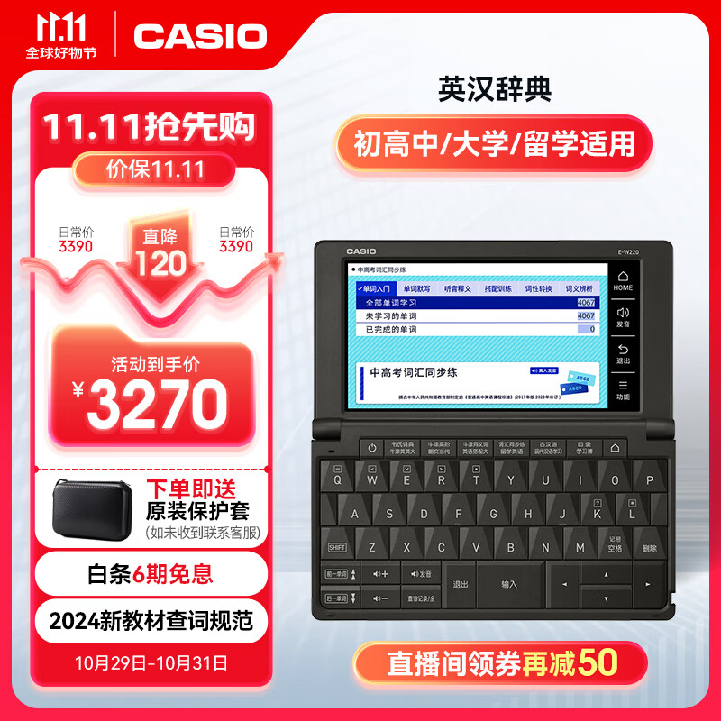 卡西欧(CASIO)卡西欧电子词典 E-W220BK2024新教材英汉牛津英语电子词典大学生 中高考词汇拓展单词学习机水墨黑价格:3390.00元!