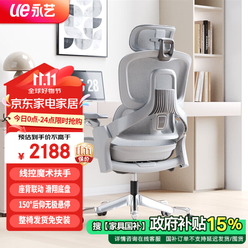 永艺撑腰椅Flow550 人体工学电脑椅 电竞椅午休可躺办公椅价格:3099.00元!