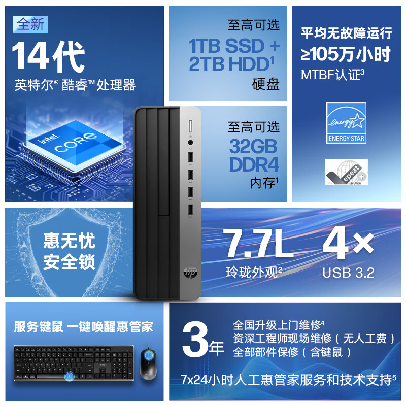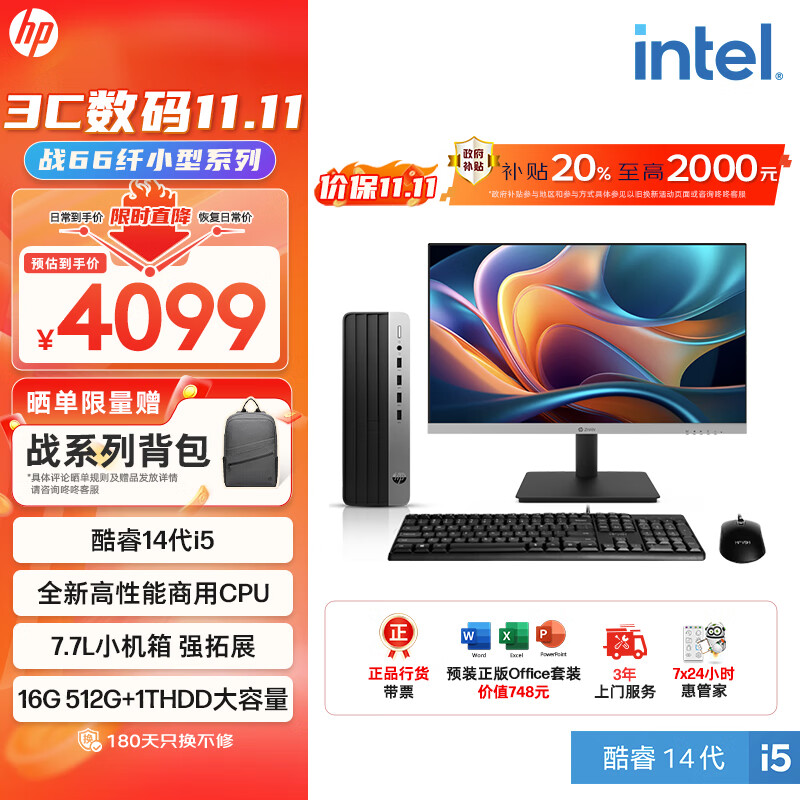 惠普 政府补贴 战66 台式电脑主机(14代i5-14500 16G 512G+1T海量存储)23.8大屏 商用办公学习价格:4099.00元!
