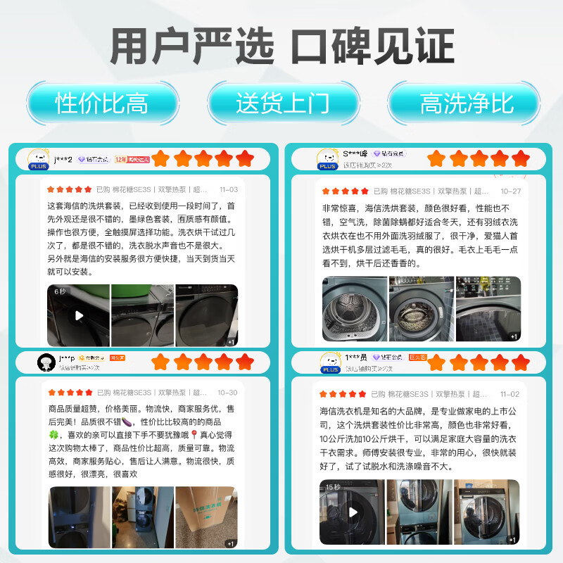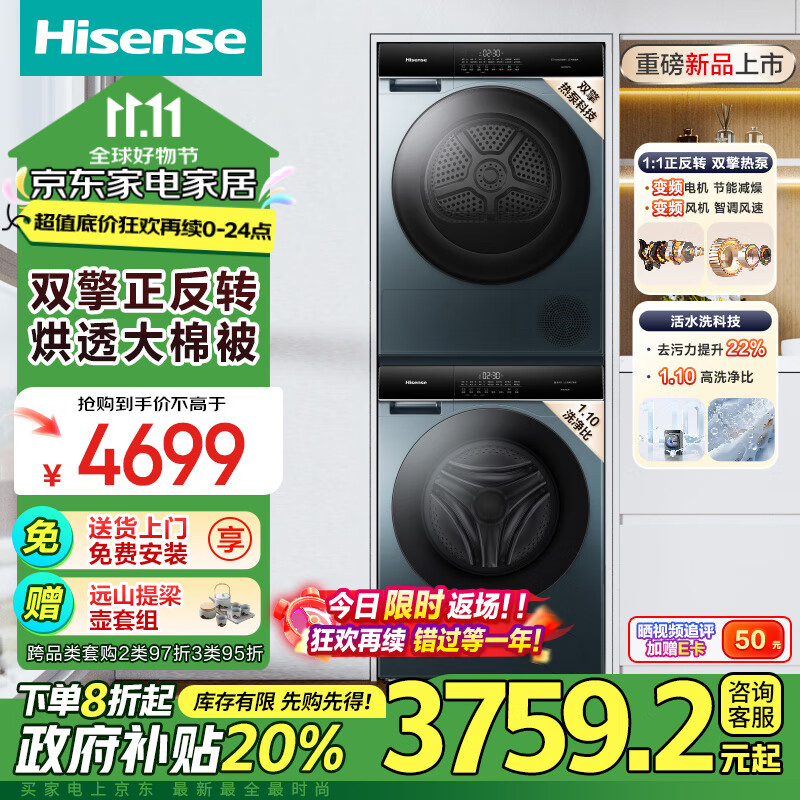 海信(Hisense)棉花糖洗烘套装10公斤滚筒洗衣机全自动+双擎热泵烘干机1:1正反转超薄 HG10SE3S+SE3S以旧换新国补价格:4699.00元!