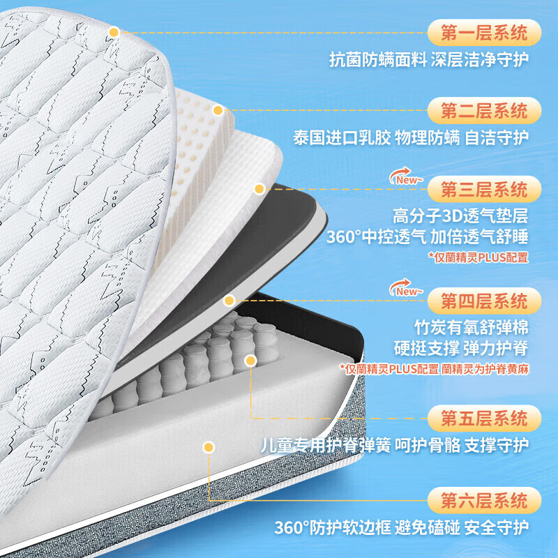 雅兰(AIRLAND)进口乳胶3D空气纤维独袋弹簧学生床垫蘭精灵PLUS 1.8*2米价格:4609.00元!