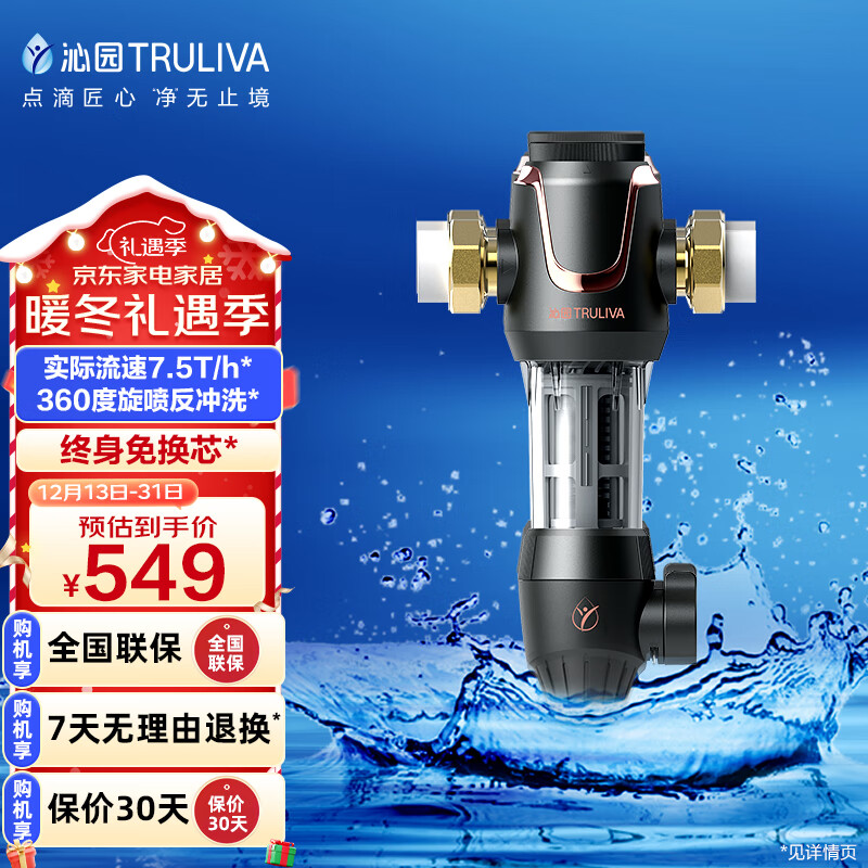 沁园(TRULIVA)升级款顶配前置过滤器 7.5吨/小时大流量 全屋家用净水器P-A5510价格:549.00元!