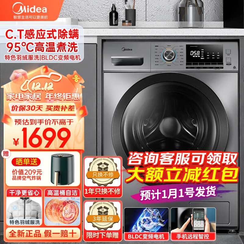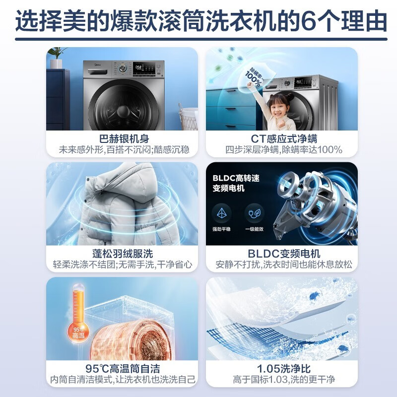 美的(Midea)全自动滚筒洗衣机 10kg 节能家电 除菌除螨 羽绒服洗 快净系列 除菌除螨 高温桶自洁 MG100VT55DY价格:1699.00元!