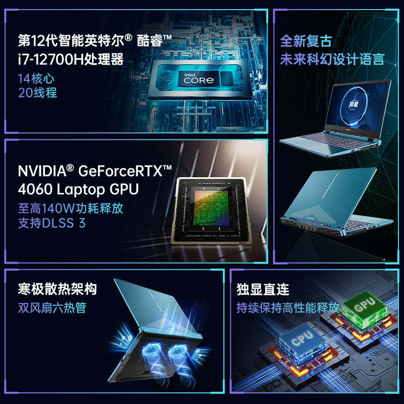 七彩虹(Colorful)隐星P15 23 英特尔酷睿i7 15.6英寸游戏本 电竞笔记本电脑(i7-12700H 16G 512G RTX4060 165Hz 2.5K)星河蓝价格:6099.00元!