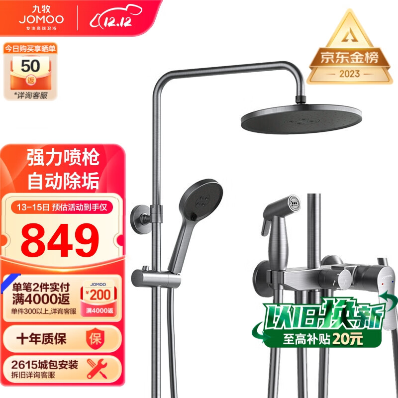 九牧 JOMOO 淋浴花洒套装 枪灰色全自动除垢喷枪花洒36484-526/HBS-1价格:2289.00元!