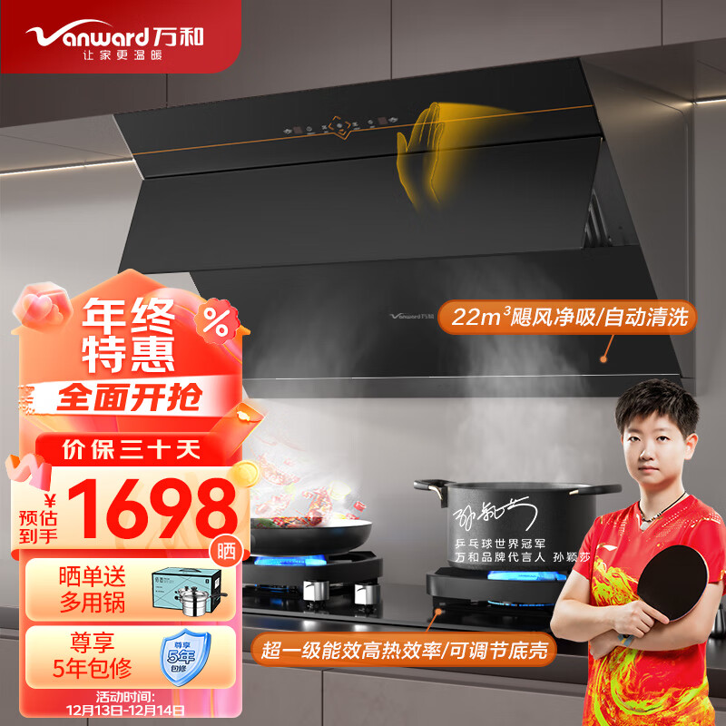 万和(Vanward)侧吸式家用抽油烟机 燃气灶具烟灶套装 22风量挥手智控 自动清洗 烟灶套餐DJ738+G6L50(液化气)价格:1698.00元!