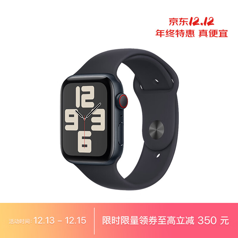 Apple Watch SE 2023款智能手表GPS + 蜂窝款44毫米午夜色铝金属表壳午夜色运动型表带M/L 健康手表MRH93CH/A价格:2599.00元!