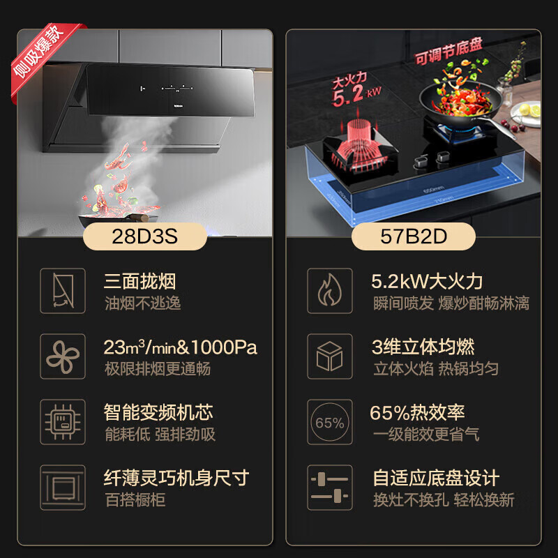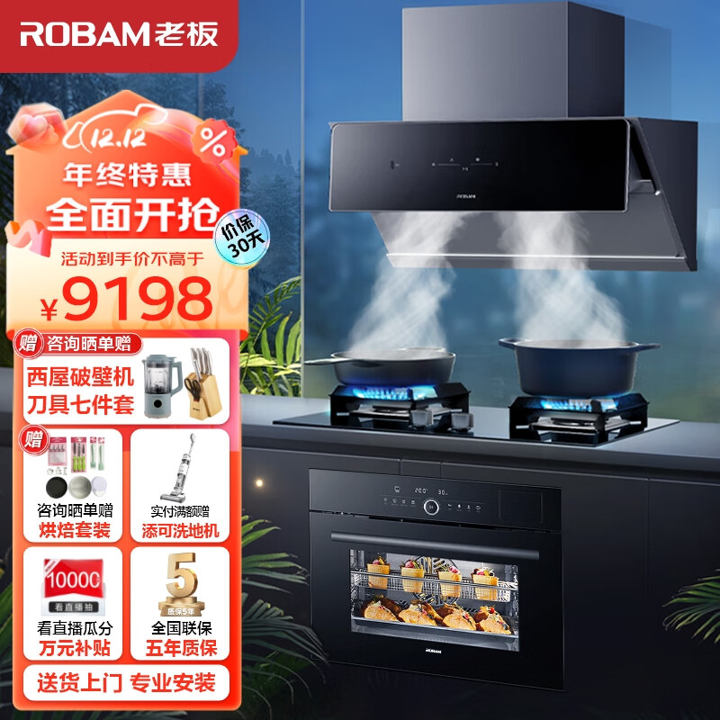 老板(Robam)28D3S+57B2DT+CQ9062D烟灶蒸烤一体机嵌入式套装厨房多件套23m3/min抽油烟机(天然气)价格:9198.00元!