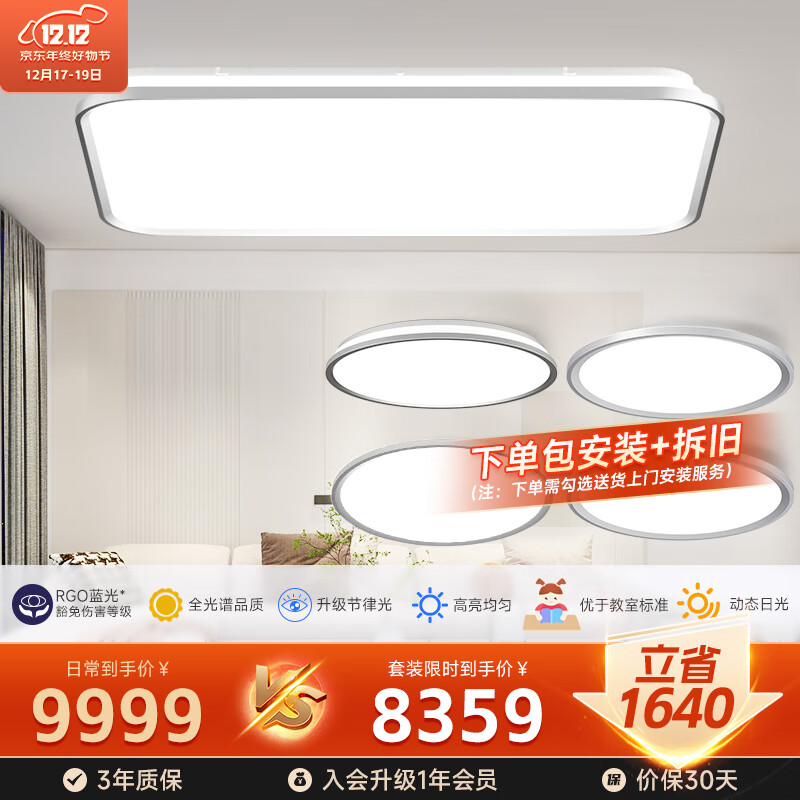 孩视宝【三室两厅】客厅大灯卧室灯护眼吸顶灯儿童房书房全光谱灯具套餐价格:9999.00元!