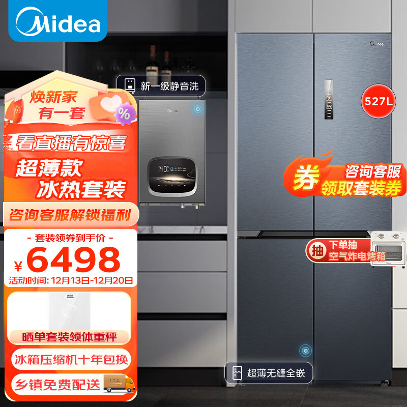 美的(Midea)冰热套装 无缝全嵌系列527升十字嵌入式冰箱MR-553WUSPZE+燃气热水器超一级静音直流风机JSQ30-SKY价格:6840.00元!